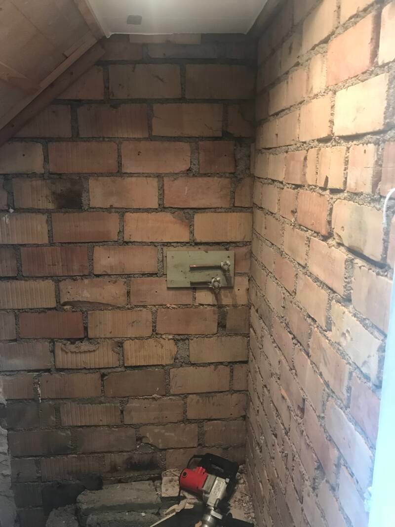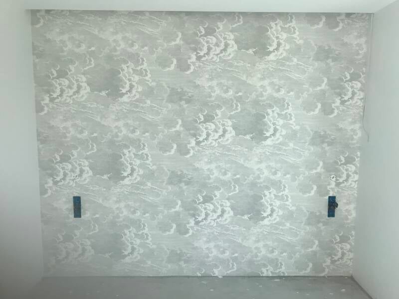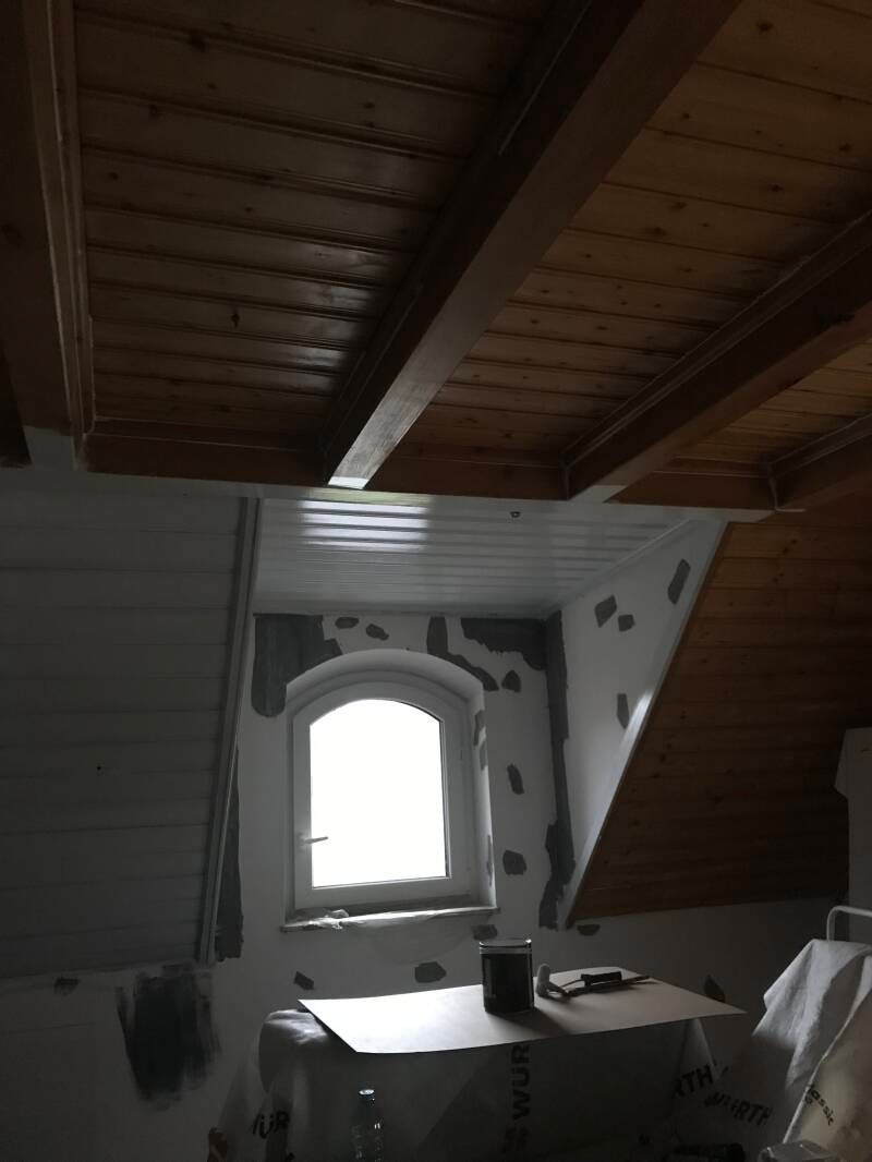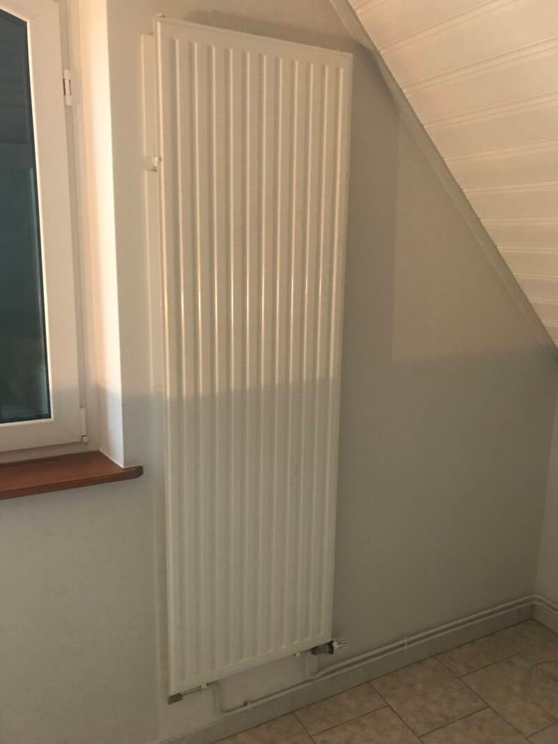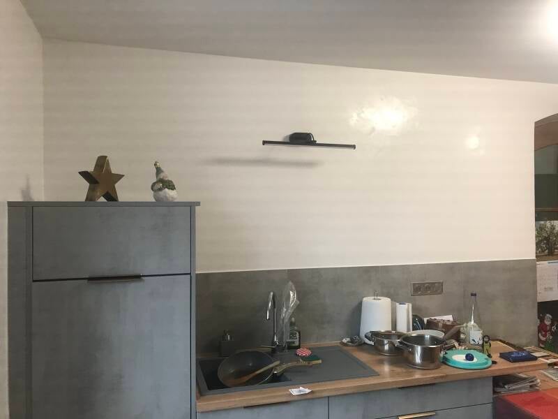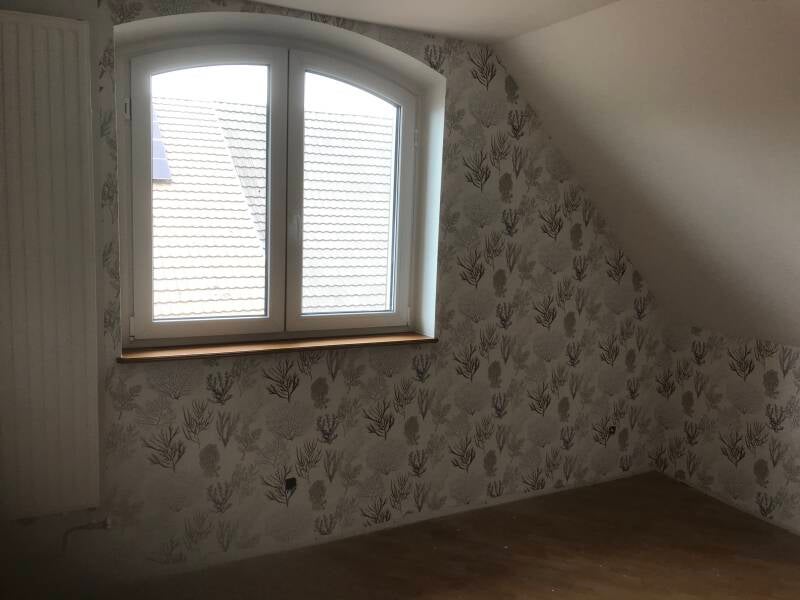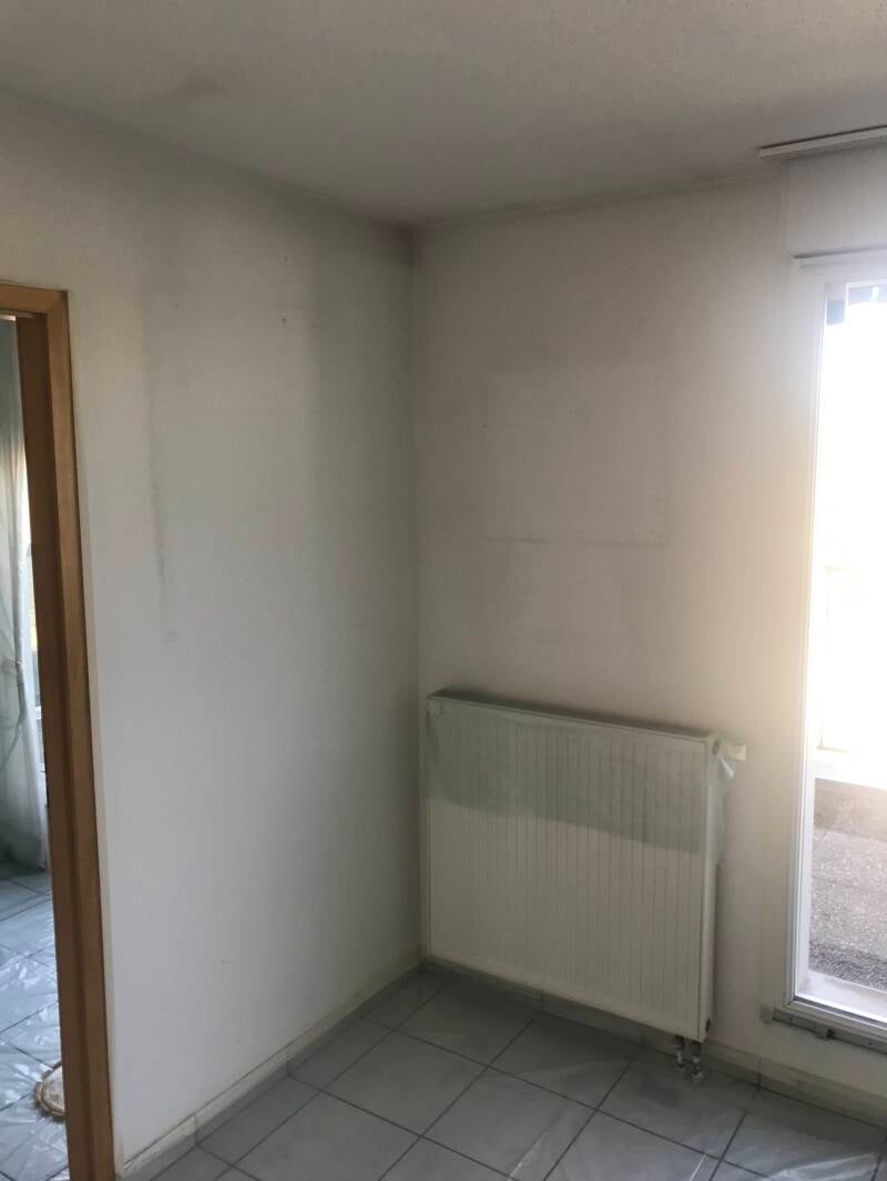 Peinture murs et lambris, rebouchage, toile de rénovation, tapisserie, pose de carrelage blanc derrières les radiateurs.
