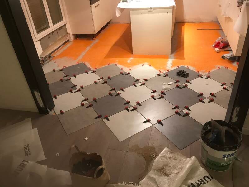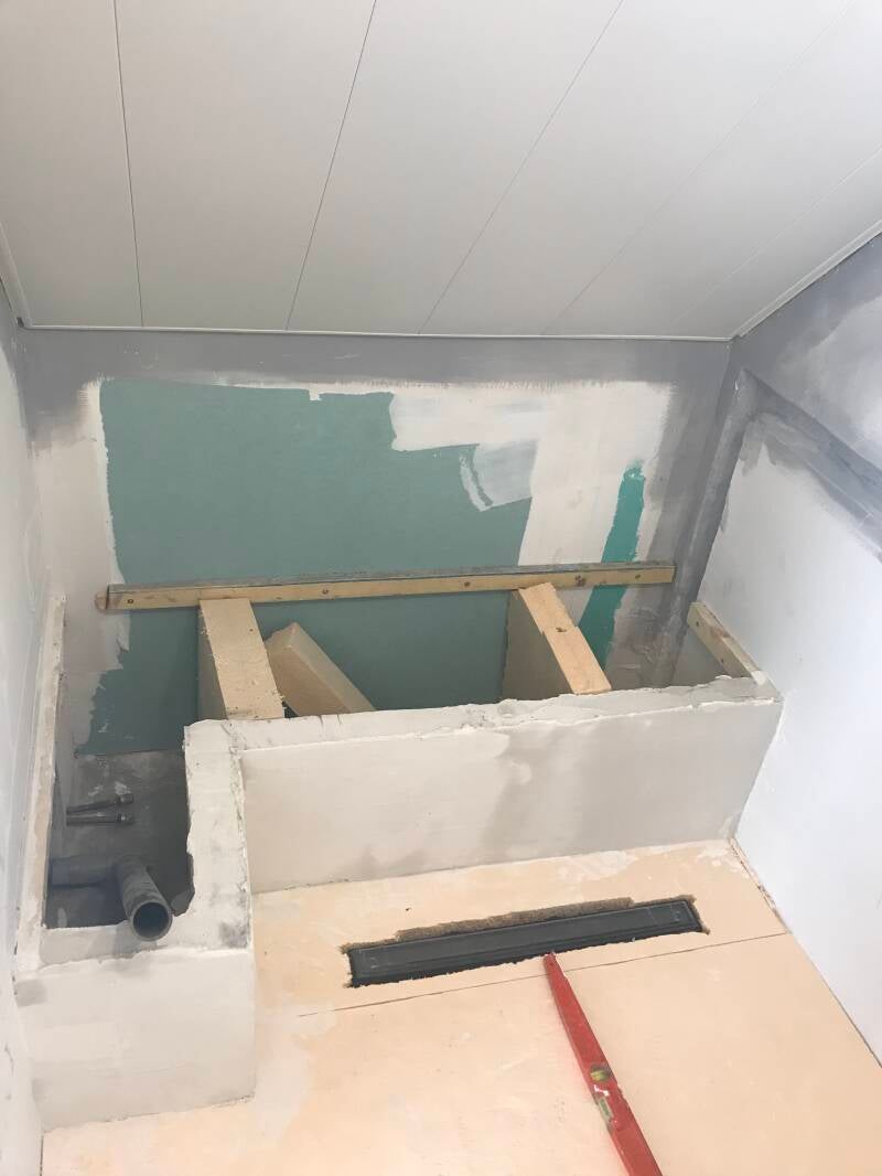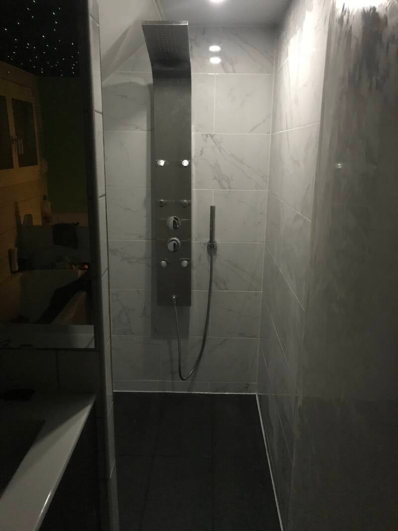 rénovation douche bac en faïence par une douche italienne. sol, mur carrelage plafond Pvc